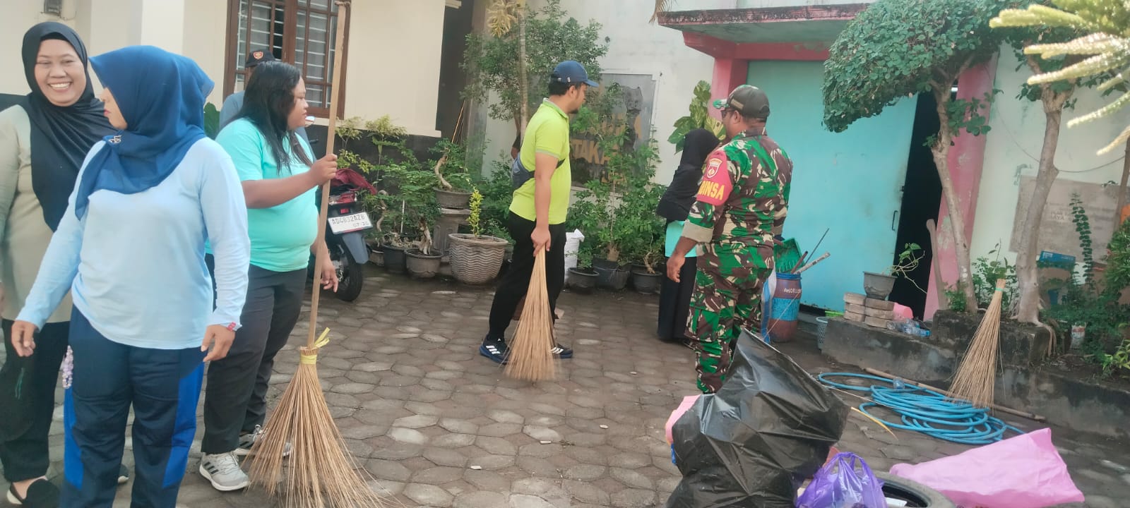 kerja bakti bersama di Kantor Kelurahan Joyotakan, Kecamatan Serengan, Kota Surakarta, 11 Oktober 2025