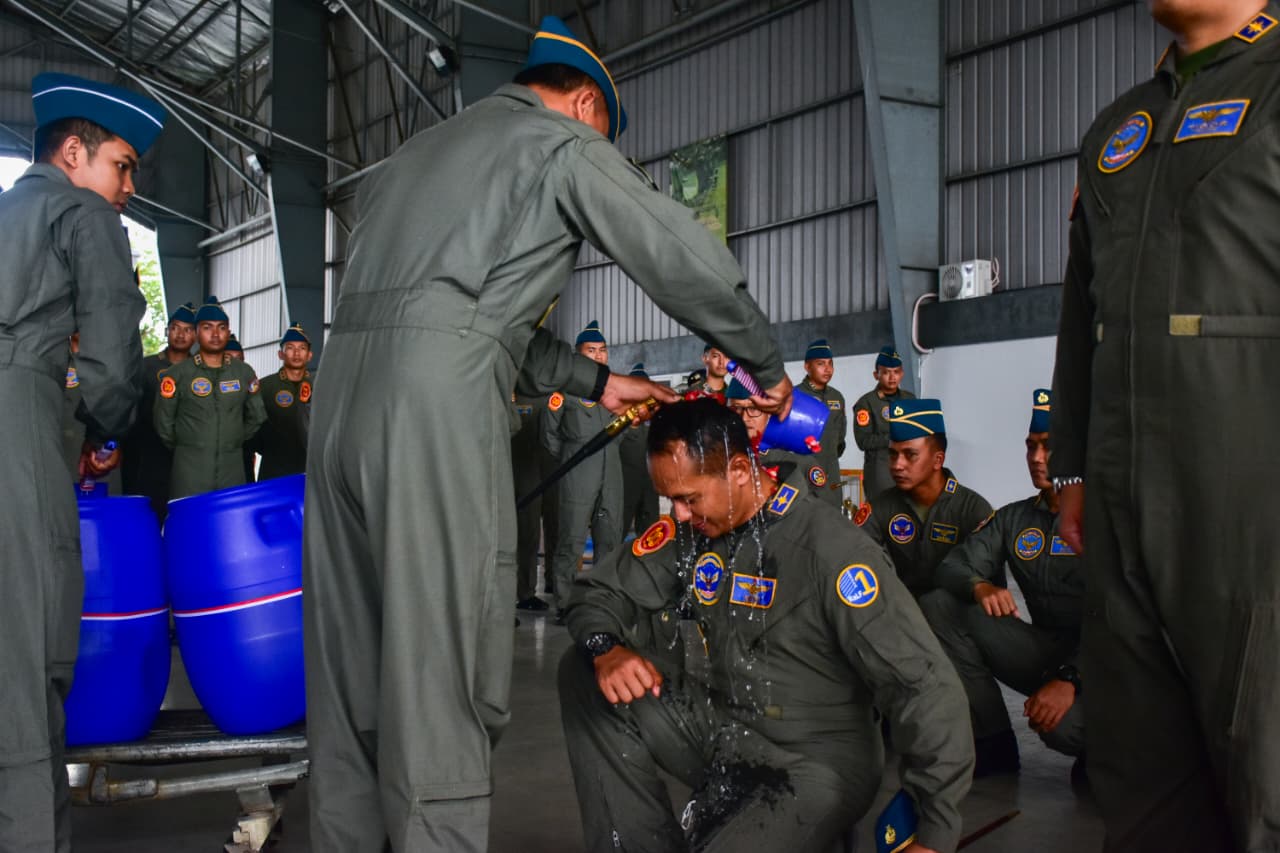 Kemudian dilanjutkan tradisi penyiraman air kembang oleh Danpuspenerbal dan PJU Puspenerbal sebagai simbol pembersihan, pembuka lembar baru dan doa bagi prajurit yang memperoleh anugerah kenaikan pangkat.