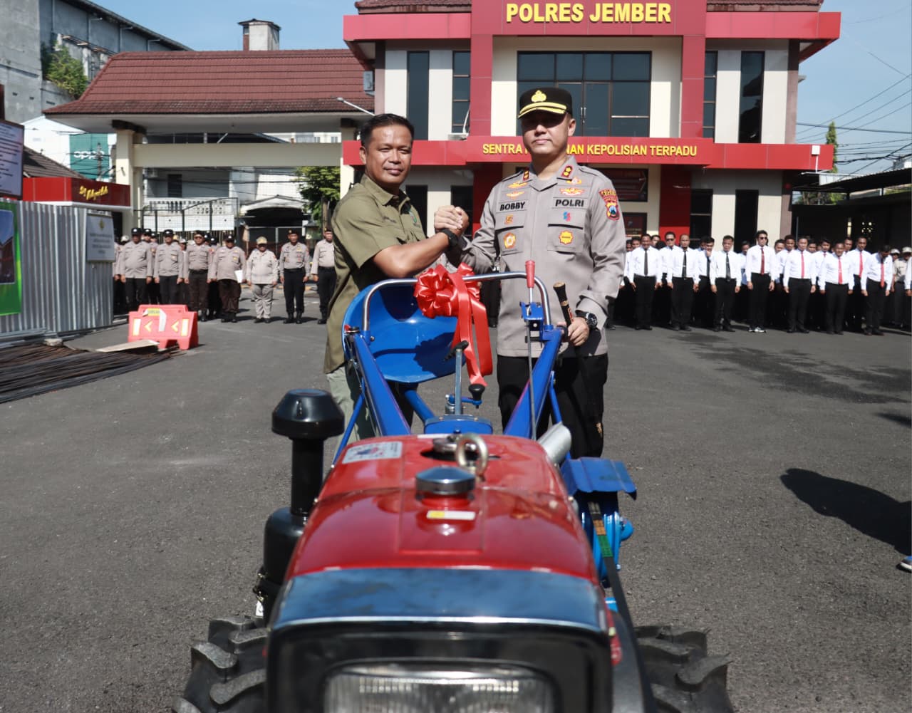 Jember – Liputan Warta Jatim, Sebagai bentuk dukungan nyata terhadap program Swasembada Pangan Nasional 2025, Kapolres Jember AKBP Bobby A. Condroputra menyerahkan dua unit traktor pertanian (alsinta) kepada dua Gabungan Kelompok Tani (Gapoktan) di Kabupaten Jember.
