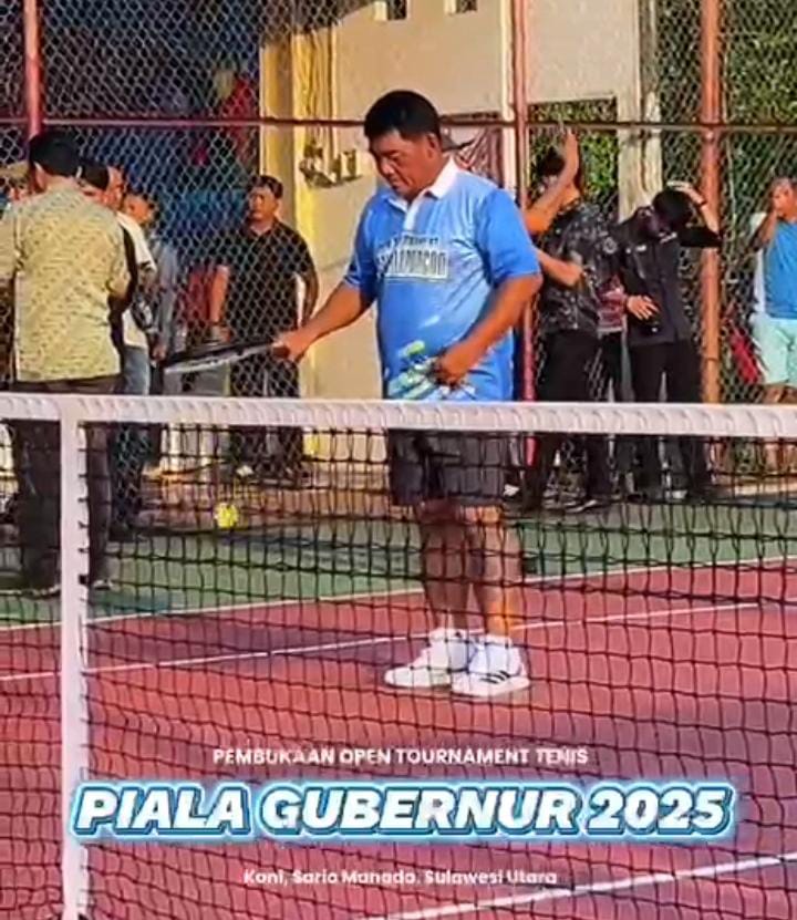 Manado – Liputan Warta Jatim, Suasana penuh semangat dan keakraban mewarnai pembukaan Open Tournament Tenis Piala Gubernur Sulawesi Utara 2025 yang digelar di Lapangan Tenis KONI Sario Manado, Rabu (9/10/2025). Gubernur Sulut Yulius Selvanus SE hadir langsung dan tidak hanya membuka acara, tetapi juga ikut merasakan atmosfer kompetisi di tengah para atlet.