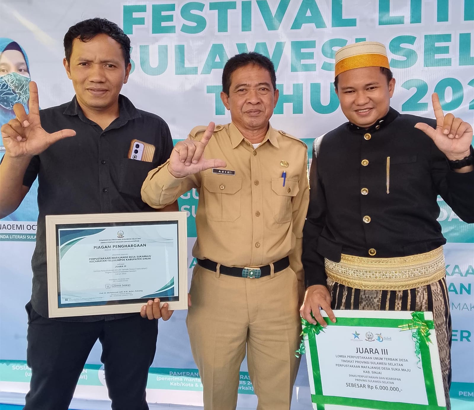 Makassar–Liputan Warta Jatim, Perpustakaan “Mafajange” Desa Sukamaju, Kecamatan Tellulimpoe, Kabupaten Sinjai berhasil meraih juara ketiga pada Lomba Perpustakaan Desa/Kelurahan Tingkat Provinsi Sulawesi Selatan tahun 2025.