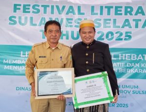 Penghargaan tersebut diterima langsung oleh Kepala Desa Sukamaju, Asrul Arkan dari Gubernur Sulawesi Selatan yang diwakili Plt. Asisten Administrasi, Ir. Astina Abbas, pada Festival Literasi Sulawesi Selatan 2025 yang digelar oleh Dinas Perpustakaan dan Kearsipan Provinsi Sulawesi Selatan di Makassar, Selasa (21/10/2025).
