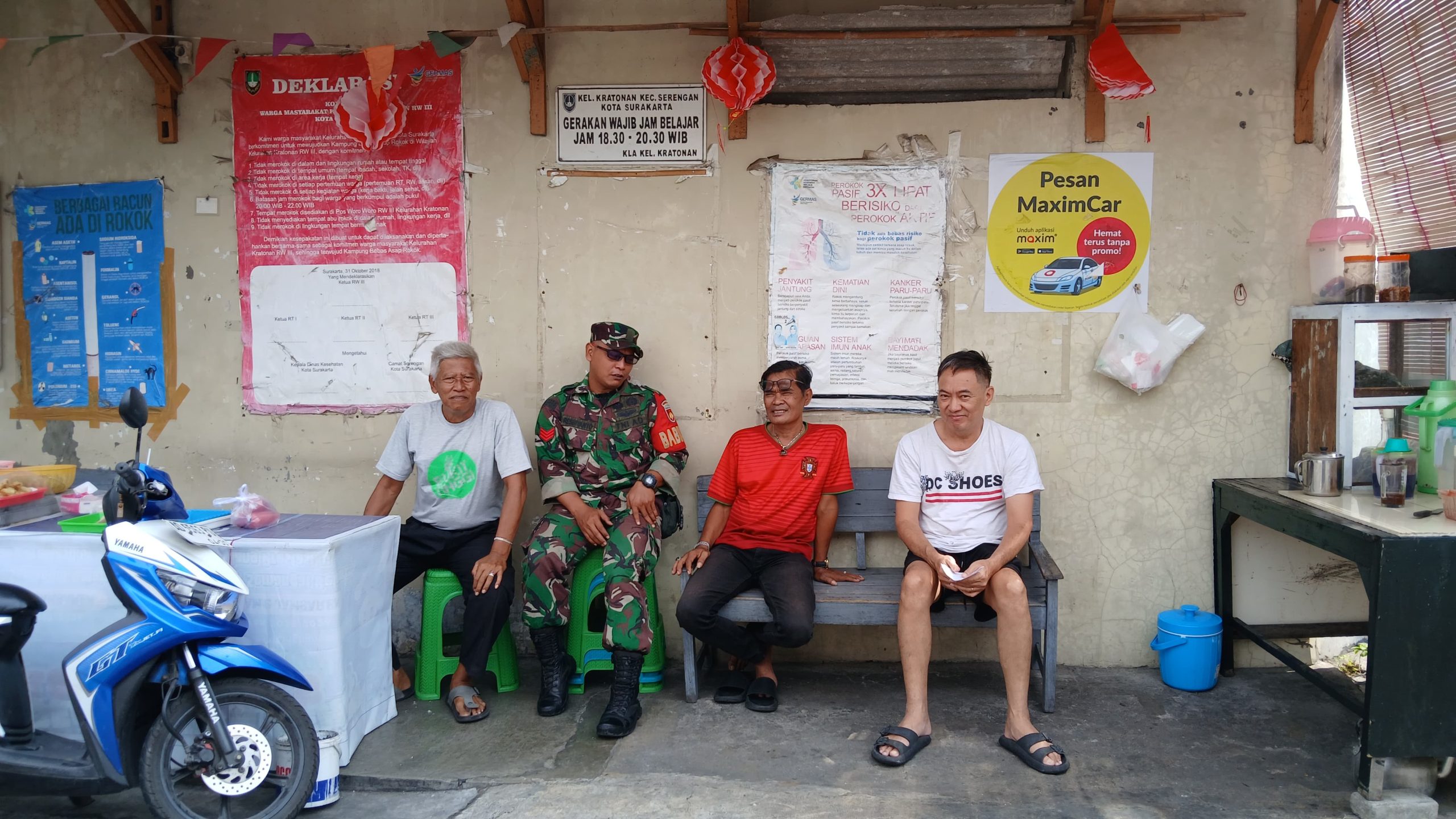 SURAKARTA – Liputan Warta Jatim, Babinsa Kratonan Koramil 03/Serengan Kodim 0735/Surakarta Koptu Resbiyanto Pukul 08.30 wib melaksanakan Kegiatan Komunikasi Sosial dengan Bapak Budi Raharjo selalu etua Rt. 2/3 dan Bapak Aryo Ketua Rt. 4/3 di Liya Snack Jl. Manduro No. 26 Kratonan Serengan Kota Surakarta. (19/10/2025)