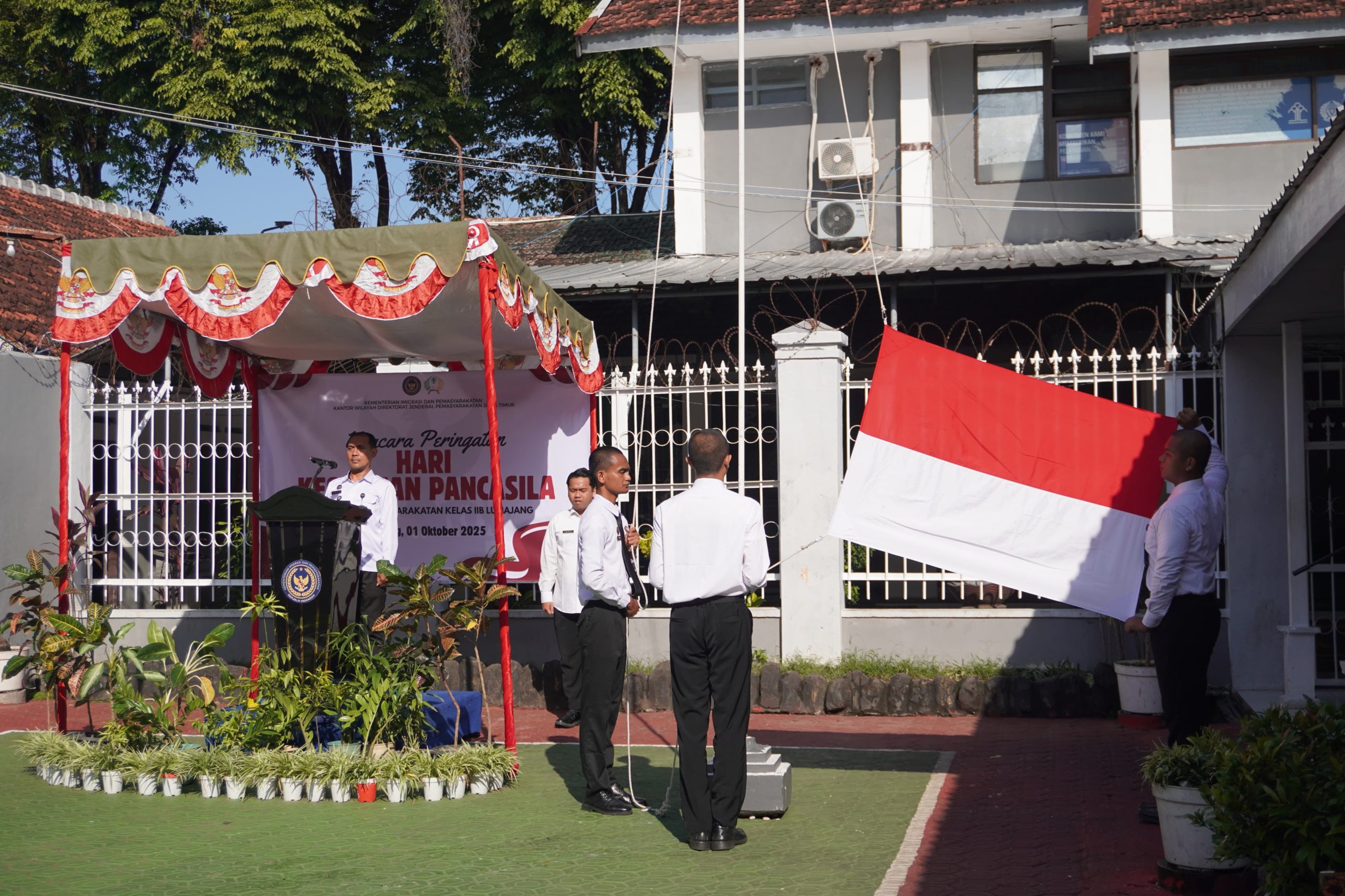 Lumajang – Liputan Warta Jatim, Dalam rangka memperingati Hari Kesaktian Pancasila, Lembaga Pemasyarakatan (Lapas) Kelas IIB Lumajang melaksanakan apel yang digelar di Halaman Blok B Lapas, Selasa (1/10). Kegiatan ini dipimpin langsung oleh Kepala Subbagian Tata Usaha (Kasubag. TU), Arif P., yang bertindak mewakili Kepala Lapas Lumajang.