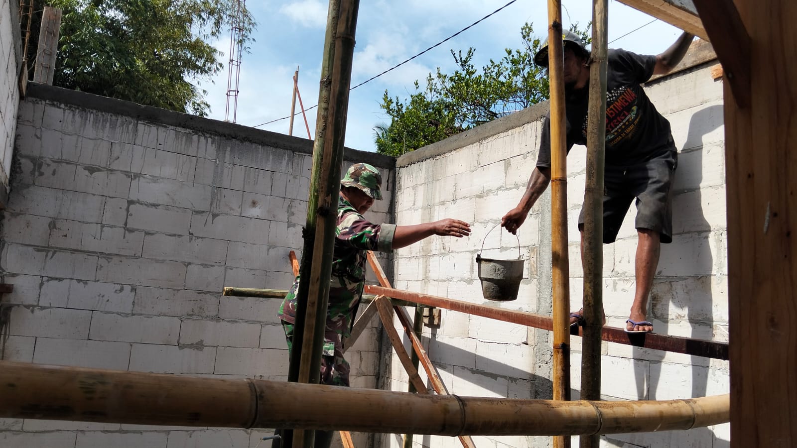 “Pekerjaan kali ini difokuskan pada pemasangan besi dan pengecoran sloof atas. Warga turut aktif membantu mulai dari mengaduk campuran hingga mengangkat material. Inilah bentuk nyata kemanunggalan TNI dengan rakyat,” ujarnya.