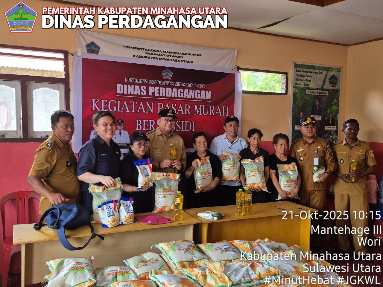 MINUT- Liputan Warta Jatim, Pemerintah Kabupaten Minahasa Utara kembali menunjukkan komitmennya dalam menjaga kestabilan harga dan mendukung kesejahteraan masyarakat. Wakil Bupati Minahasa Utara, Kevin William Lotulung, S.H., M.H., bersama Dinas Perdagangan Kabupaten Minahasa Utara, menggelar kegiatan Pasar Murah Bersubsidi di dua desa di Pulau Mantehage, yakni Desa Buhias dan Desa Tinongko, Selasa (21/10/2025).